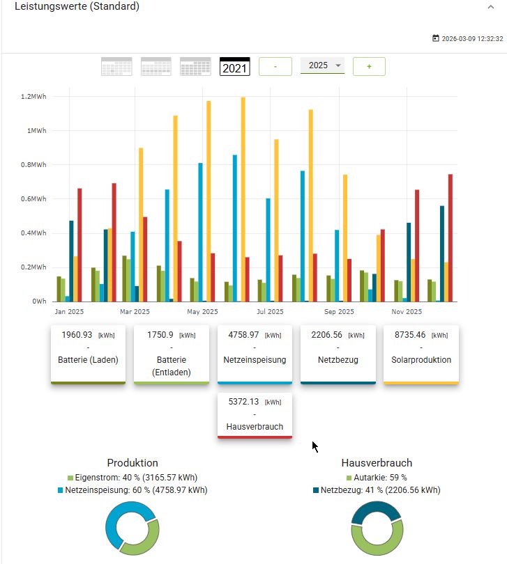 Hier sehen Sie was unsere Solaranlage für die Solarproduktion (Eigenbedarf und die Netzeinspeisung) gebracht hat.